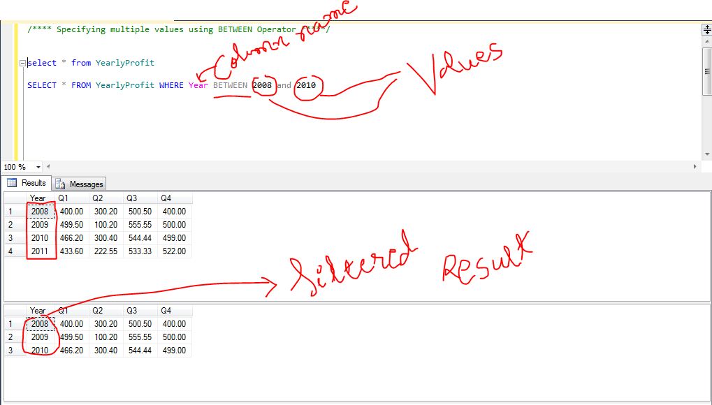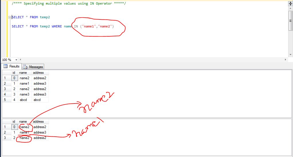 SELECT * FROM TABLENAME WHERE COLUMN NAME IN (‘VALUE1′,’VALUE2’)